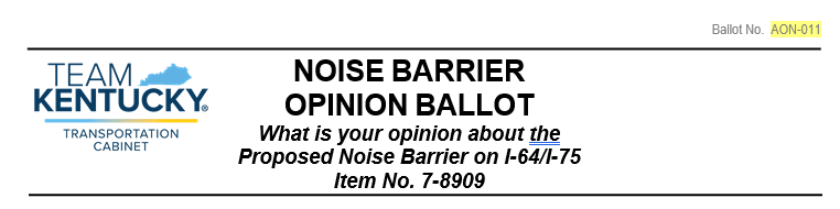 Welcome to the Registration Page for the Noise Barrier Information Meeting for the widening of I-64/I-75 between Newtown Pike and the I-64/I-75 split located west of Lexington. The meeting will be held with Owners and Residents of properties adjacent to the I-64/I-75 corridor that would benefit from the construction of noise barriers. The meeting will be conducted on-line using a Zoom platform. The purpose of the meeting is to determine the sentiment of owners and residents of properties lying adjacent to the Interstate who will benefit from the construction of a noise wall as a component of the project. A presentation will be made beginning at 7:00 followed by a Question/Answer Session.